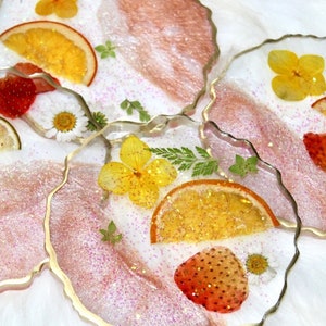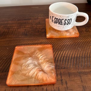 We currently offer Orange Resin Coasters and Pink Resin Coasters. Each piece is carefully handcrafted to protect surfaces while adding a decorative flourish.